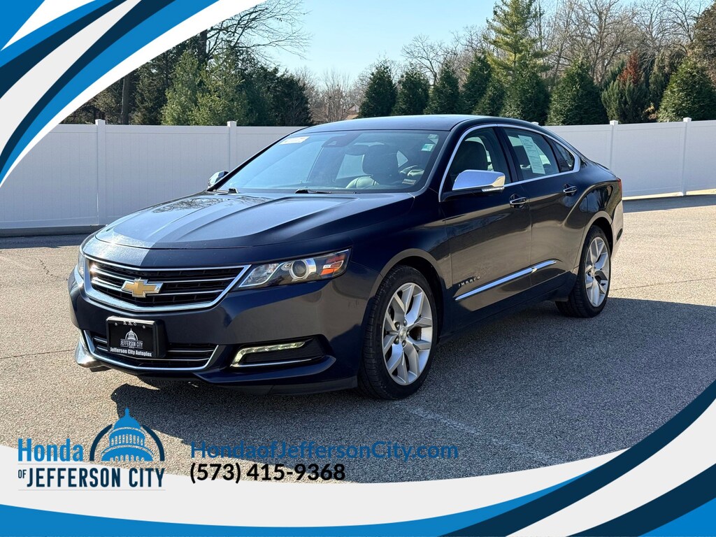 Blue Velvet Metallic! This 2017 Chevrolet Impala Premier comes complete with Front Wheel Drive, HID headlights, Bluetooth Connection, Steering Wheel Audio Controls, Leather Seats, Heated Front Seat(s), Immobilizer, Remote Engine Start, Cross-Traffic Alert, Blind Spot Monitor, Rear Parking Aid, and much more. Our highly trained technicians inspected and re-conditioned this vehicle. No hassles. No worries. Peace of mind. We want our customers here at Honda of Jefferson City to be customers for life. Being car-owners ourselves, it's only fitting that we'd provide our customers with the kind of courtesy, service and respect that we would expect. We not only want you to feel this way during the shopping phase but also years later when you look for your next ride! We have a full parts and service department and certified technicians. No matter what make or model we have got you covered! Please chat, email, or call to verify any information in question and to schedule your VIP test drive. Experience the difference for yourself at the Honda of Jefferson City, located at 3625 Missouri Blvd, Jefferson City, MO 65109. Call us or visit us anytime. www.HondaofJeffersonCity.com